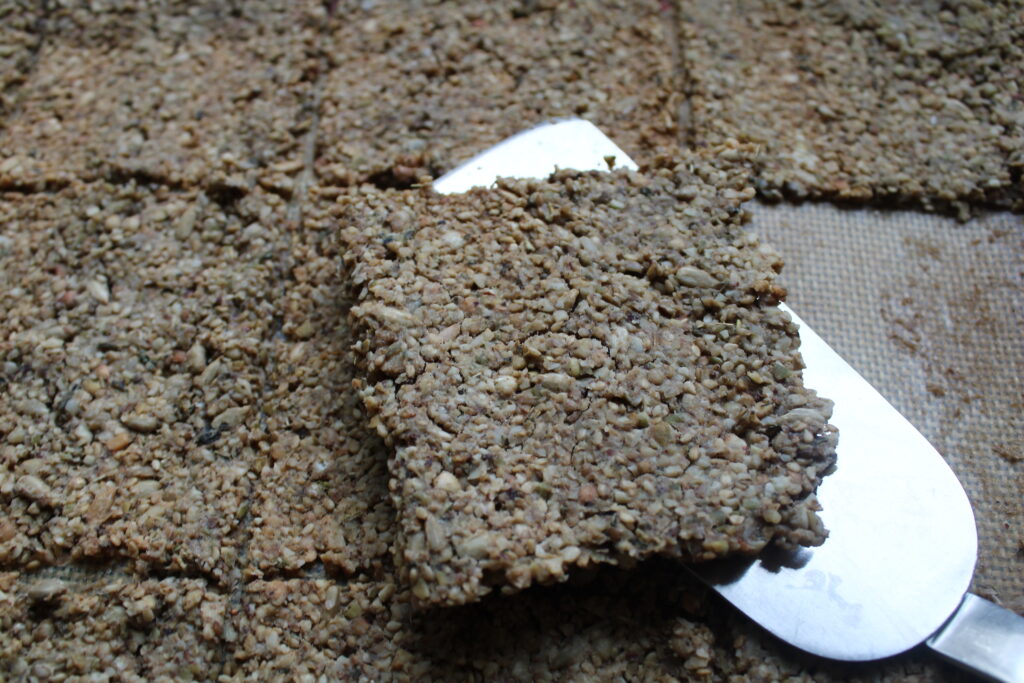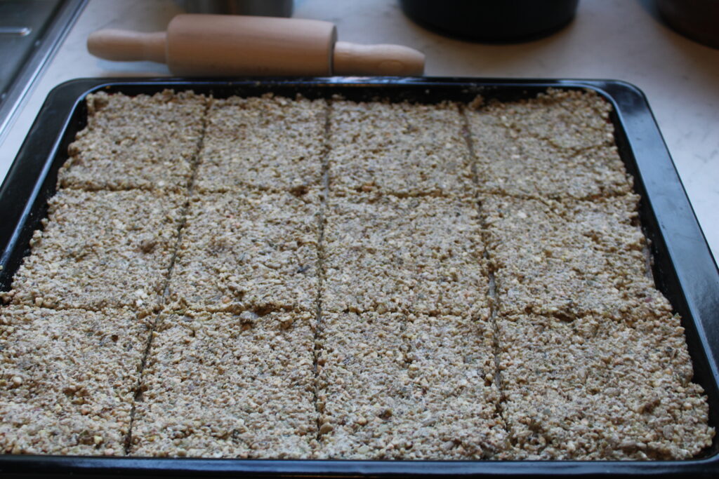 Bak de crackers af 50 minuten op 140˚, zijn de daarna nog niet helemaal knapperig laat je ze in de oven verder drogen.